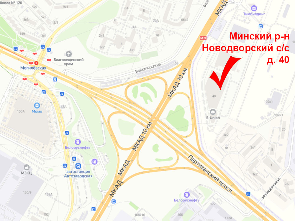 Ориентир: станция метро «Могилёвская» – пересечение МКАД и Партизанского проспекта – торгово-складской корпус с внешней стороны МКАД.