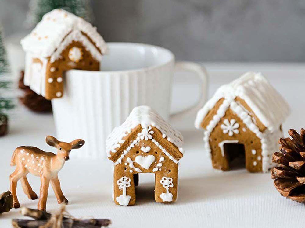 4. Пряничные домики в стиле «Nordic»: белый айсинг, тонкий контур, графичность и спокойствие.